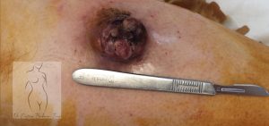 Biopsia are rolul de a stabili diagnosticul de certitudine, atunci cand avem de-a face cu leziuni extinse al caror diagnostic diferential ne este necesar in stabilirea planului de reconstructive ( examplu: leziuni situate la nivelul fetei, palmei, plantei) . Dezavantajul biopsiei este acela ca, poate sa nu contina fragmentul cel mai specific din tumora, oferind un rezultat fals. Pentru orientarea biopsierii , dermatoscopia poate fi de ajutor in aceasta situatie.